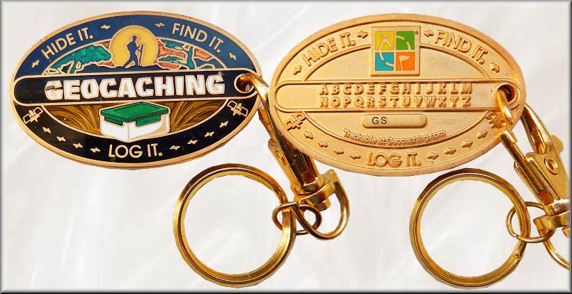 | Als Geocoin wird ein Trackable (Reisender) beim Geocaching bezeichnet, also ein Gegenstand, der von Geocache zu Geocache reisen soll und dessen Route im Internet verfolgt werden kann. Geocoins sind Medaillen bzw. Medaillons ohne Geldwert. Neben Geocoins gibt es preiswertere Alternativen, z. B. Travel Express, Travel Tags (Der Travel Tag® hat die gleiche Funktion wie der Travel Bug®, nur dass der Alu-Anhänger figürlich und mindestens einseitig farbig ist. "Travel Tag®" und das Designlogo sind eingetragene Marken der Firma Groundspeak.), Geojack oder Travel Slug. Quelle: Secret Society of Coin Addicts | ![]() Als kleiner Dank für den Besuch der Seite gibt es diese Coin zum Discovern. |