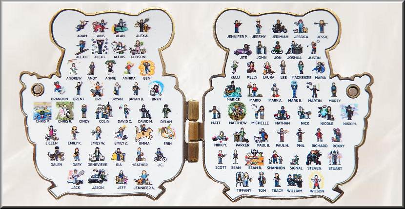 Mapamundi Geocoin | Diese Version der Mapamundi Geocoin hat einen Durchmesser von 38 mm, ist 3,5 mm dick und ist in antiker Bronze ohne Farben gehalten. Die Mapamundi Geocoin wurde inspiriert durch den Katalanischen Atlas von 1375 der erstmalig eine Kompassrose verwendete. Designelemente zeigen das Kalenderrad und die Kompassrose. Quelle: www.cachezone.eu weitere Infos Am 17.04.2014 setzten wir eine Coinkopie im Final des sehr liebevoll und aufwändig gestalteten Multi-Caches Egon & Co.aus. Bereits 2 Monate später wurde sie als vermisst gemeldet, ohne offiziell den Cache verlassen zu haben. 11.2017 Eine nächste Kopie startete anlässlich unserer ersten Minikreuzfahrt "Rund um das Bernsteinmeer" und soll nach Mallorca reisen, dort ein paar Caches besuchen und dabei Fotos sammeln. Nach dem 24.02.2020 verliert sich die Spur der Coinkopie in einem Cache in Portugal. |
