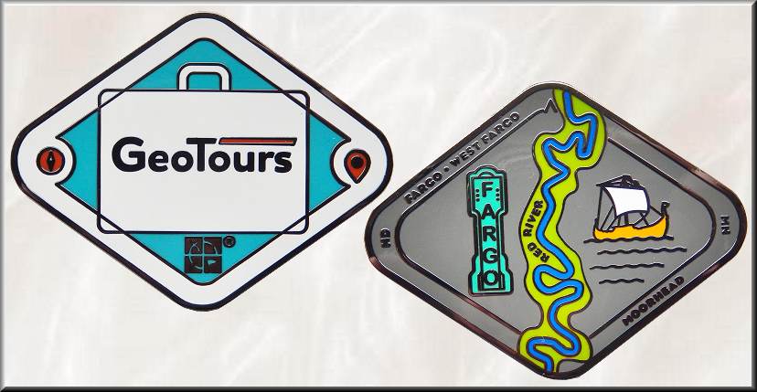 Fargo-Moorhead GeoTour | Die Fargo–Moorhead Metropolregion im Mittleren Westen der USA wird durch den Red River of the North getrennt. Fargo liegt in North Dakota, Moorhead in Minnesota. Moorhead war für Jahre die Wahlheimat der seit Juni 2011 aktiven Cacherin Gia aus der Gegend von Fargo und wurde von ihr ins Herz geschlossen. Unter ihrem Nick giacaches war sie hier auf Cachesuche und entwickelte mit einigen Cacherfreunden die "Fargo-Moorhead GeoTour", die erste offizielle GeoTour in den US-Bundesstaaten Minnesota und North Dakota. Großen Anteil hatten daran onionpond, m&m_O und Trycacheus. Mit dem Event "The Official Fargo-Moorhead GeoTour Kickoff" am 28. September 2019 im Fargoer Besucherzentrum wurden gleichzeitig 24 FMGT-Caches veröffentlicht. Ziel der GeoTourgestaltung war, die Kreativität der regionalen Cacher-Community hervorzuheben und den Cachern einen guten Grund zu geben, die Fargo-Moorhead-Region zu besuchen. Für die Geocacher, die mindestens 20 der 24 Geocaches der "Fargo-Moorhead GeoTour" gefunden hatten, gab es im Besucherzentrum die hier vorgestellte Geocoin im charakteristischen GeoTour-Design, entworfen von Mitarbeitern des Fargo–Moorhead Besucherzentrums. Gefertigt wurde die Geocoin über den online-Shop Compass Creek Designs. Die dunkelgraue Rückseite der 58 x 40 x 3.5 mm großen Black Nickelcoin wird durch den sich im grünen Tal dunkelblau dahin schlängelnden Red River zweigeteilt: Links repräsentiert die bekannte Leuchtreklame des Fargoer Theaters die Stadt in ND, rechts weist das Segelschiff auf die Bedeutung von Moorhead in MN als Transportknotenpunkt hin. Der Red River of the North diente als Umschlagplatz für Güter und Passagiere zwischen den Zwillingsstädten Minneapolis und St. Paul sowie Winnipeg in Manitoba. Waren wurden mit Ochsenkarren von St. Cloud, Minnesota, nach Moorhead transportiert und dort auf Schiffe für die Fahrt nordwärts auf dem Red River verladen. Das Segelschiff "Hjemkomst" symbolisiert aber eigentlich die detailgetreue Nachbildung des Gokstad-Wikingerschiffs aus dem 9. Jahrhundert, das in Norwegen gefunden wurde, und an die norwegischen Wurzeln der Region erinnert. Der Lehrer Robert Asp baute die Hjemkomst, um seinen Traum zu verwirklichen, von Minnesota nach Norwegen zu segeln, was seinen Kindern zwei Jahre nach dem Tod des Vaters 1982 gelang. Heute wird die Hjemkomst im Hjemkomst Center in Moorhead ausgestellt. Die GeoTour fand sehr großen Gefallen bei den Geocachern, das beweisen nicht nur die über 3400 vergebenen Favoritenpunkte. Schon Ende 2020 war wohl die erste Auflage von 500 Geocoins bereits vergeben und es wurden 250 weitere "Fargo-Moorhead GeoTour"-Münzen nachgeprägt. Gia wurde für ihre Arbeit an der Fargo-Moorhead GeoTour mit dem Tourism Champion Award 2020 ausgezeichnet. Da giacaches im Sommer 2022 nach Seattle zog, denn seit September 2021 arbeitete sie in der Funktion eines Business Development Specialist als Lackey im Geocaching HQ, konnte sie den hohen Standard bei der Cache-Pflege nicht mehr aufrechterhalten. So wurde die "Fargo-Moorhead GeoTour" Ende Januar 2023 archiviert. Noch vorhandene GeoTourcoins und ebenfalls veröffentlichte GeoTour-Tags wurden weiter online oder im Fargo-Moorhead Visitor Center verkauft. Zwar haben wir die GeoTour nicht aktiv besucht, bedanken uns aber vielmals bei Gia für diese Geocoin mit interessanter Geschichte und die Übermittlung ergänzender Informationen. |