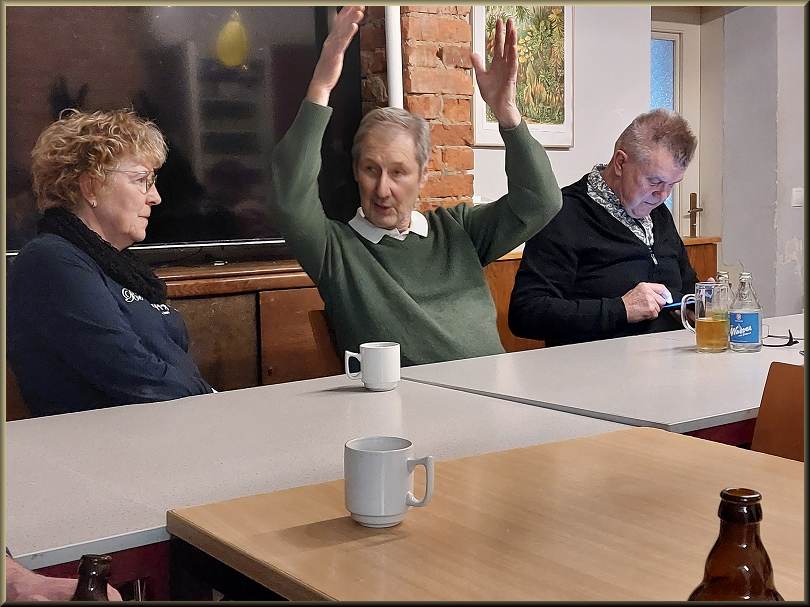 | Danach gestaltete sich der Abend wie gewohnt: Es bildeten sich Spielgruppen, die Rommé, Skat und andere Kartenspiele spielten, sowie Klönrunden. In der Mitternachtsstunde leerte sich so langsam unser Clubraum, denn ein paar erholsame Stunden Schlaf sollten vor der Wanderung noch sein. Am nächsten Morgen trafen wir uns alle zum Frühstück im Speiseraum. Es folgten die üblichen Vorbereitungen zur Wanderung. |
