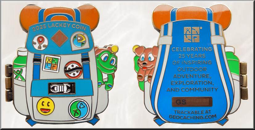 Chris Mackey (ein bekannter US-Coingestalter) fertigte diese Coin für den GeoCoinClub. Gedacht für Senioren ist der Tracking-Code besonders groß gehalten. Auch sonst ist die Coin mit 2 Zoll = 51 mm Durchmesser und 4 mm Stärke recht groß. Am 21.08.2012 setzten wir eine Coinkopie in dem, im Geburtsjahr des Geocachings veröffentlichten, Cache "Creekside Stash" am Stadtrand von Santa Rosa aus. 08.10.2016 Im März 2018 tauchte sie rund 230 km weiter wieder auf und reiste bis 2021 weiter von Cache zu Cache. Am 28.05.2021 wird die Coinkopie letztmalig im Cache "A14 AS Dahlenwarsleben" in Sachsen-Anhalt gesichtet. Danach verliert sich ihre Spur. |