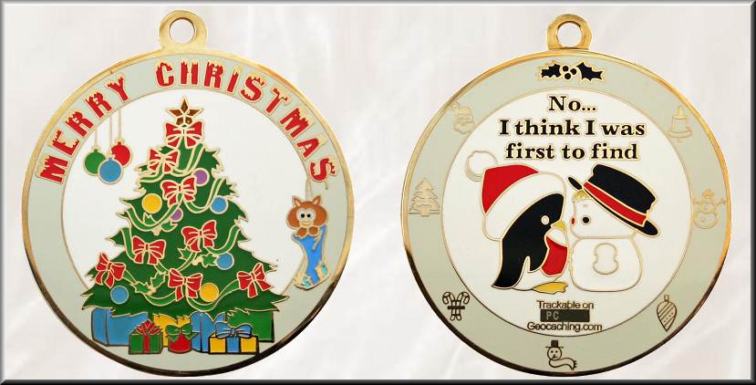 Found It! Geocoin | Im Januar 2005 startete das Vater-Sohn-Team Jim und Ben aus Lyons in Oregon unter dem Nick Mystery Ink ihr gemeinsames neues Hobby Geocachen. Bereits 2 Monate später hatte sie das Geocoinsammelfieber infiziert, denn sie wollten gleich 25 Münzen der seit Juni 2004 angekündigten neuen California Geocoin kaufen. Wahrscheinlich lernten Mystery Ink in jener Zeit auch den bereits seit Juli 2002 aktiven kalifornischen Geocacher Marky aus San Jose kennen, ebenfalls ein leidenschaftlicher Coinsammler. Dieser hatte schon Erfahrungen mit der Herstellung von Geocoins. Zusammen gestalteten sie Ende 2005 die nicht trackbare "DNF Geocoin", die dann von Rusty von PersonalGeocoins gefertigt wurde und Anfang Februar 2006 erschien. Mit den Erfahrungen, die Jim und Ben nun hatten, entwickelten sie in Anlehnung an die "DNF Geocoin" die hier gezeigte, auf geocaching.com trackbare "Found It! Geocoin" und eröffneten am 07. April 2006 im Geocaching-Forum mit der Coinvorstellung auch gleich den Verkauf. Angeboten wurden 600 Coins in Black Nickel und eine auf 150 Stück limitierte Glänzend Gold-Edition. Zusätzlich wurden 50 nicht trackbare Black Nickel-Münzen geprägt. Diese waren nicht im Handel erhältlich und wurden als Preise bei FTF-Treffen und Veranstaltungen vergeben. Die limitierte Auflage war auf ein Exemplar pro Haushalt beschränkt. Die Vorderseite der 38 x 3,5 mm großen Geocoin besteht aus gelber, mit klarem Epoxidharz überzogener Emaille, zeigt das Lächeln eines „Gefunden!“-Symbols und kann im Dunkeln leuchten. Die Rückseite hat einen weißen Soft-Emaille-Hintergrund. Darauf befindet sich eine farbig filigran gefüllte Kompassrose, kombiniert mit den Symbolen für traditionelle, virtuelle, Multi- und Mystery-Caches. Der Rand ist rot emailliert und trägt die Aufschrift „I Came. I Saw. I Found It!“ und „TFTC“. Für die Möglichkeit, diese alte Coin in unsere Sammlung aufnehmen zu können, bedanken wir uns bei der Geocoinliebhaberin amtg aka Kathleen aus Florida. |